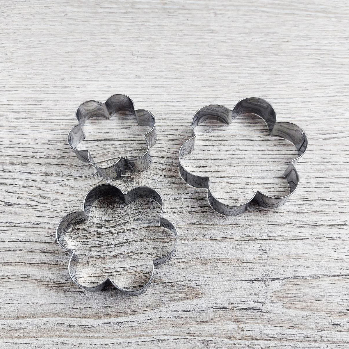 Размеры: мешок 30 см; гвоздь 4,5 х 2 см; ножницы 13 х 2 см; формы 7 см, 6 см и 5 см, высота 1,5 см;