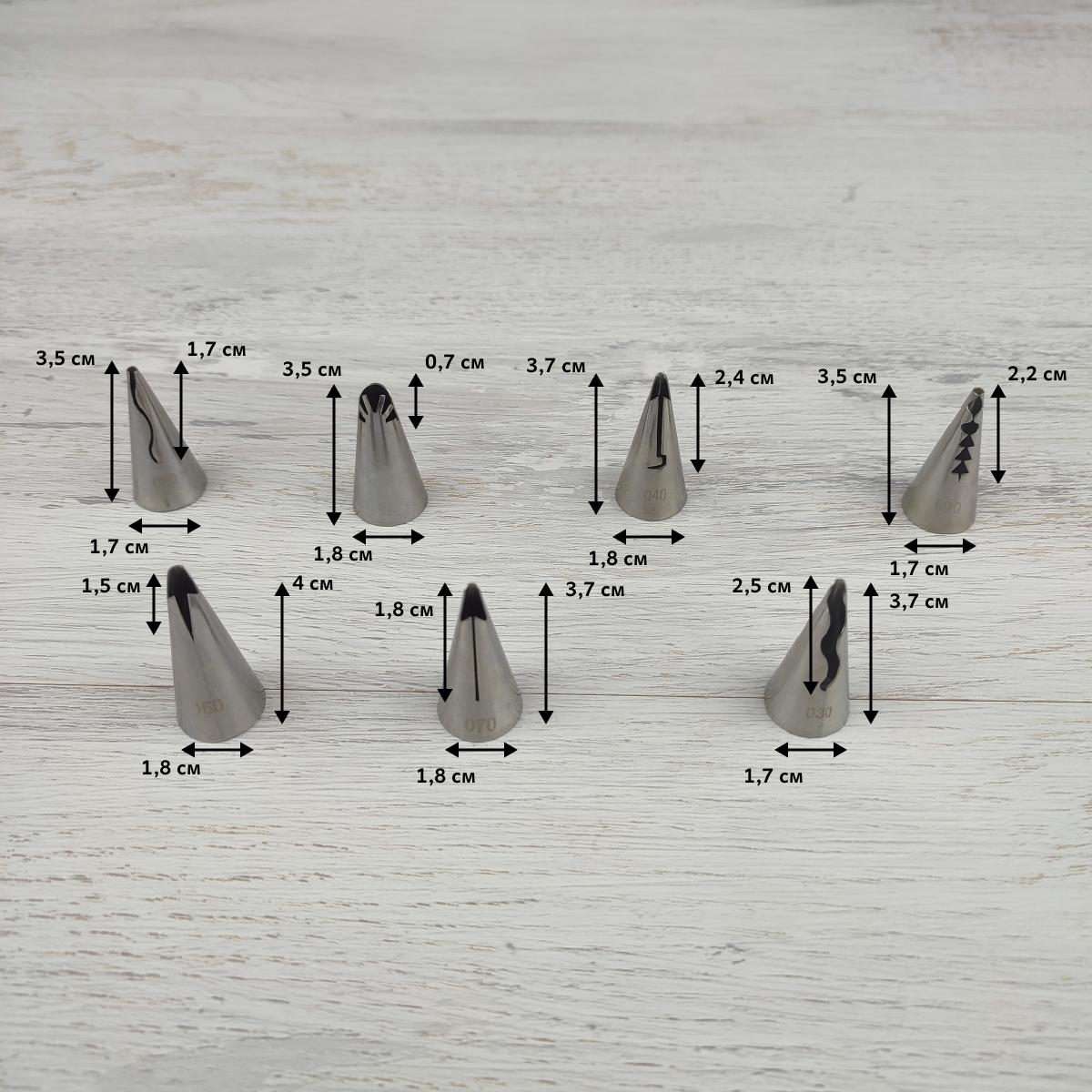 - Универсальное применение: Насадки "Оборки" подходят для работы с различными видами кремов, глазури и айсинга. Экспериментируйте с цветами и текстурами, создавая уникальные комбинации.