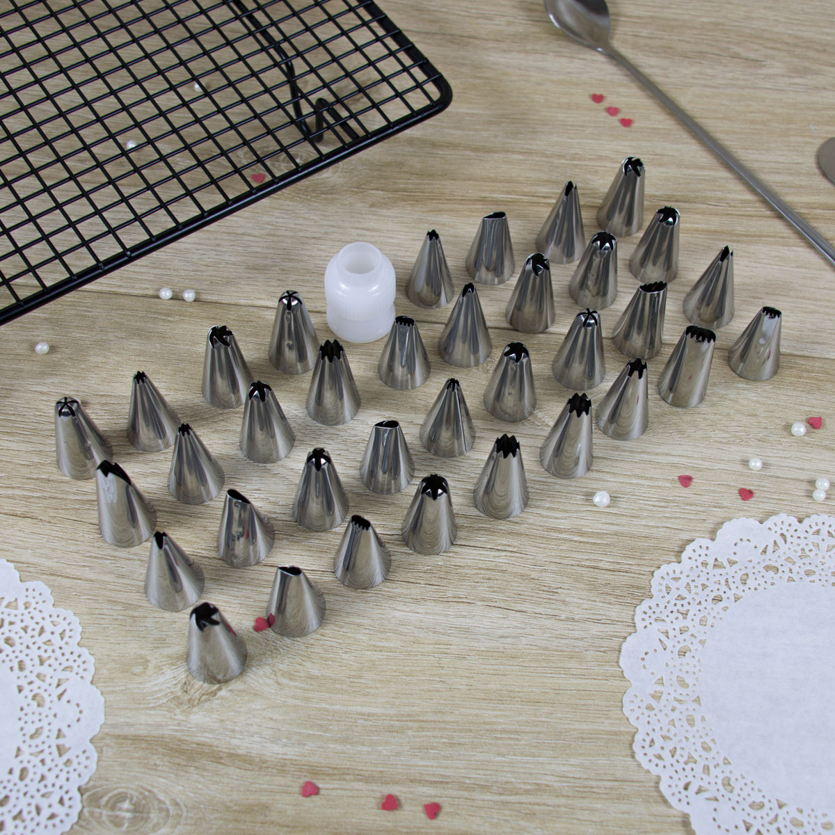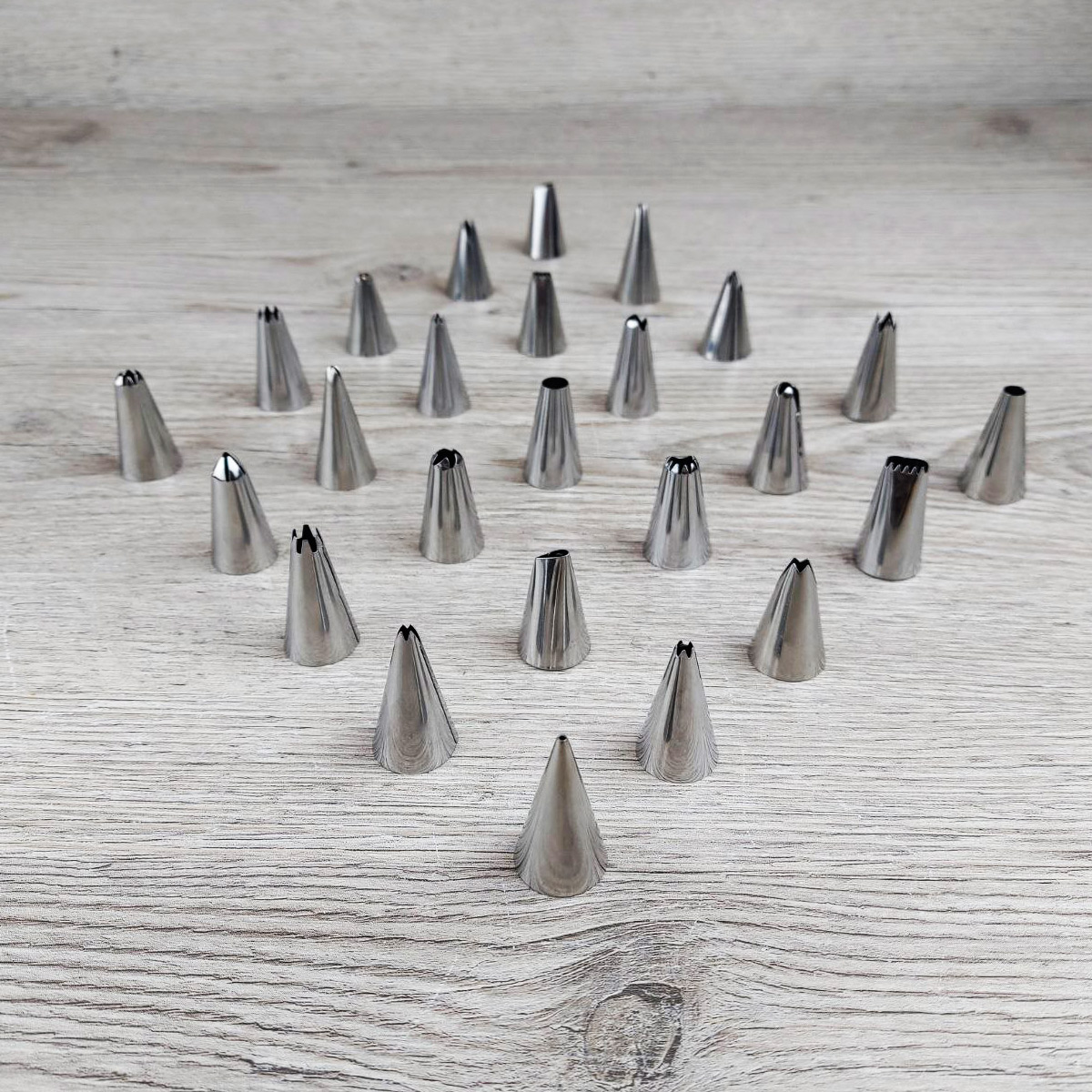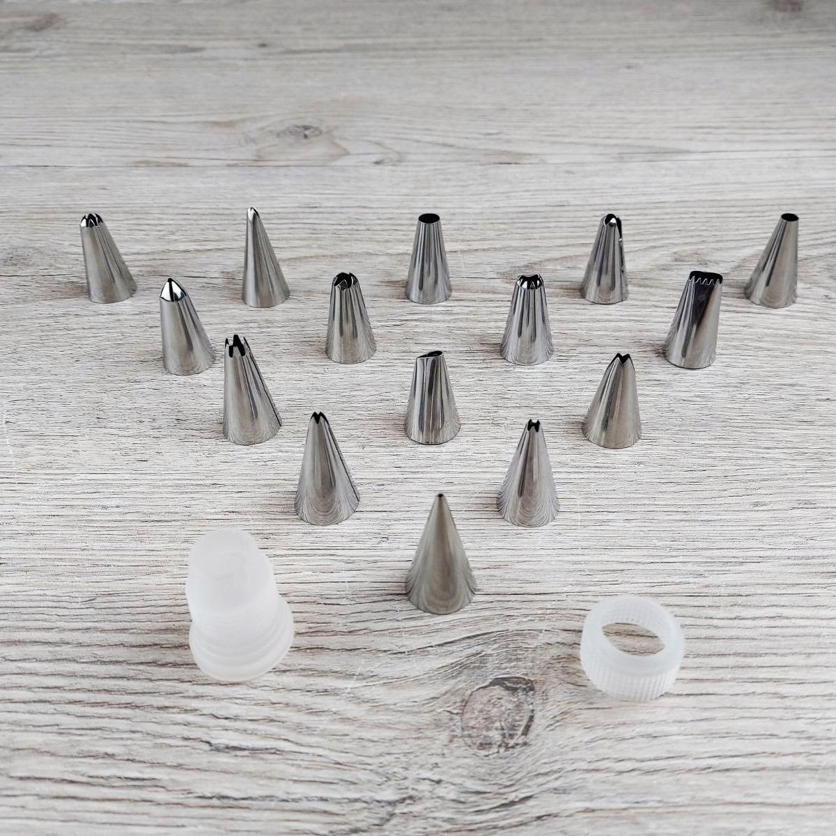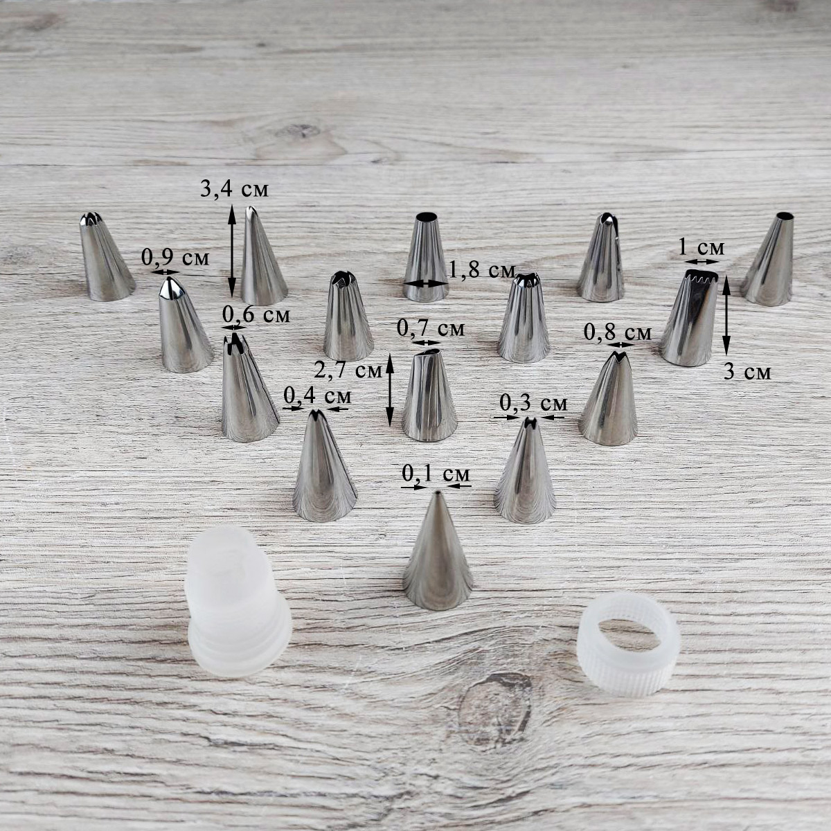 Набор кондитерских насадок - это набор различных сменных насадок, которые используются для украшения кондитерских изделий, таких как торты, печенье, кексы и другие сладости.