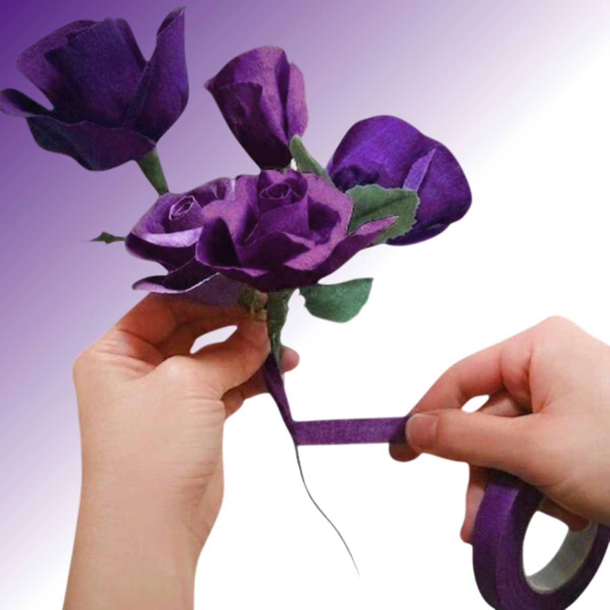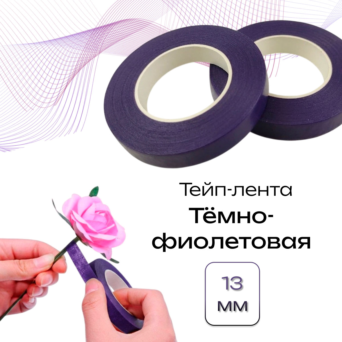 Флористическая тейп-лента это растягивающаяся лента с клеящим слоем, клей на которой активируется при растяжении ленты. Флористическую ленту используют практически во всех видах цветоведения, где необходимо тейпировать стебли, веточки и тычинки для незаметного и естественного перехода.