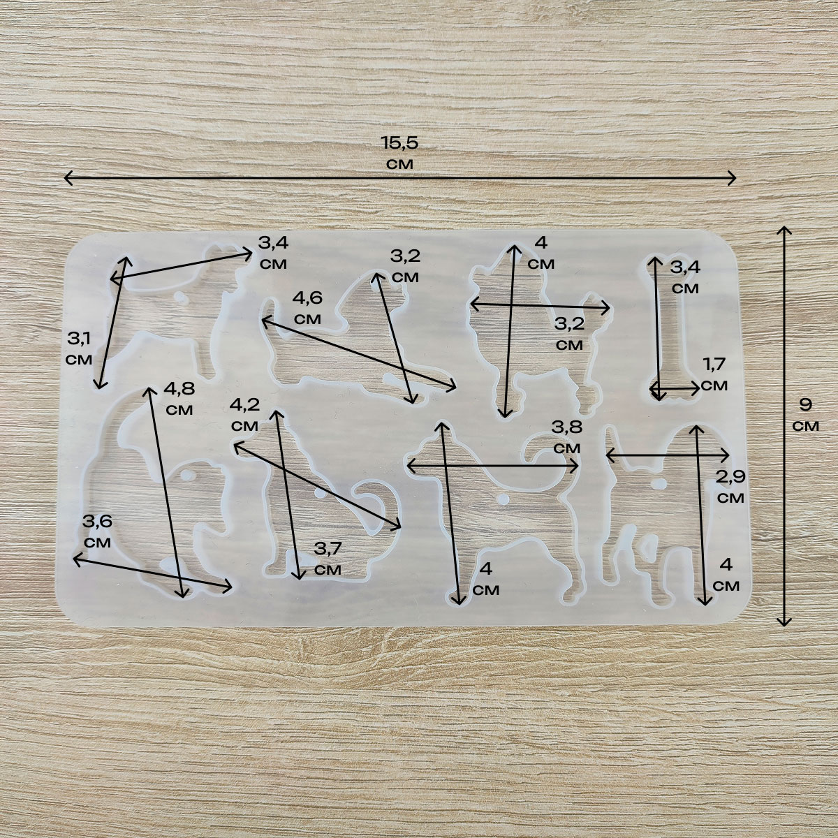С помощью этой формы вы сможете создавать оригинальные украшения, добавляя в эпоксидную смолу различные наполнители: глиттер, пигменты, блёстки. Готовые фигурки в виде собачек подойдут для украшения одежды и аксессуаров, декорирования интерьера, создания уникальных подарков для близких и друзей.