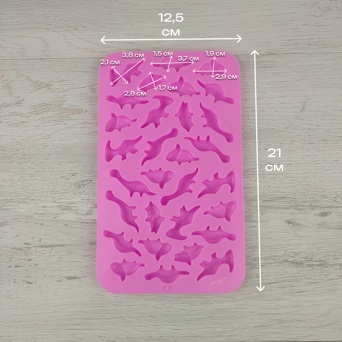 Силиконовая форма для шоколада и льда Мармеладные динозаврики 30 ячеек