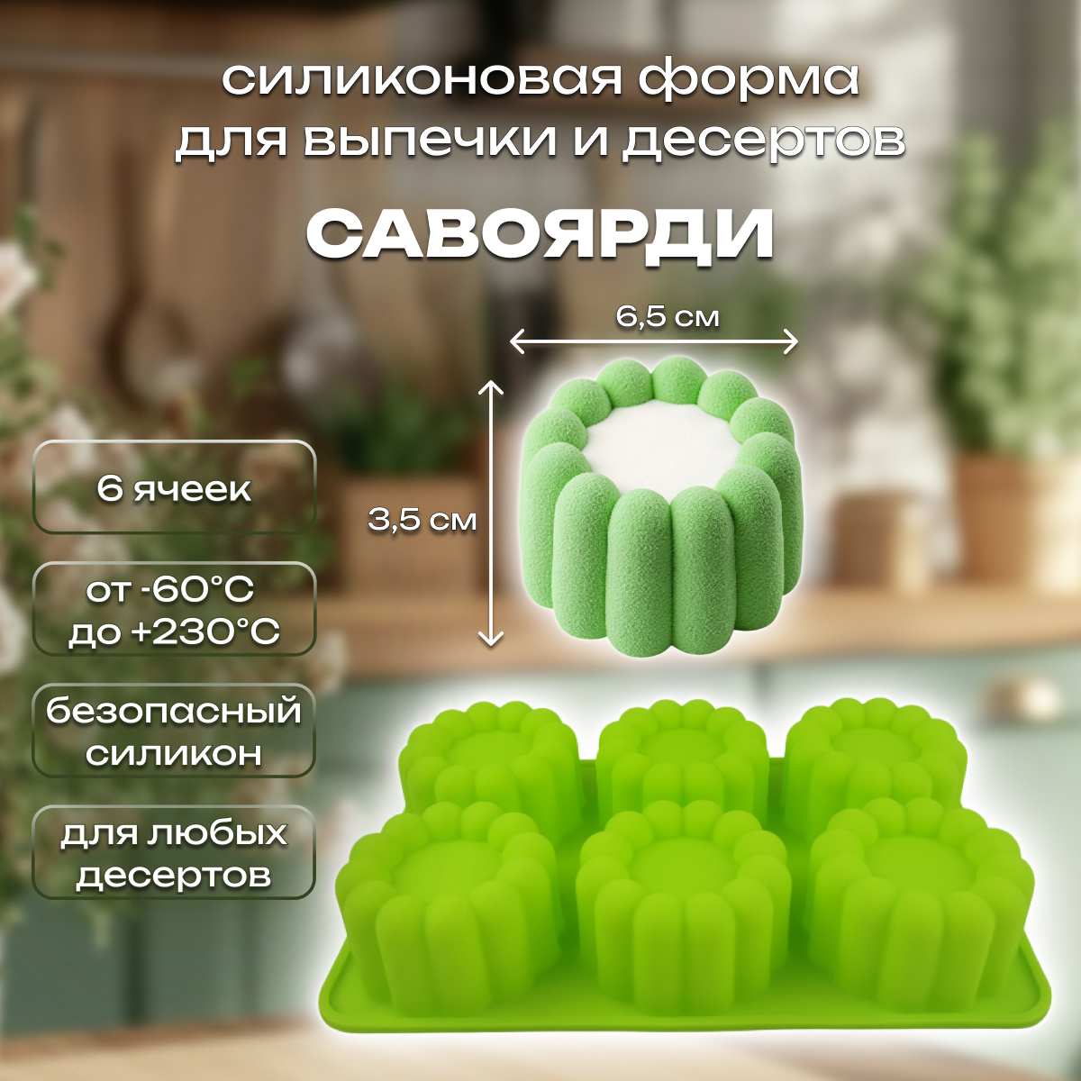 Силиконовая форма на 6 ячеек идеально подходит для создания изысканных порционных десертов, муссовых пирожных, желе или выпечки необычной формы с мягкими рельефными гранями, напоминающими савоярди. Гибкий и термостойкий материал обеспечивает легкое извлечение готовых изделий без повреждения их структуры, позволяя сохранить четкость каждой детали кулинарного шедевра. Благодаря лаконичному и современному дизайну, десерты, приготовленные в этой форме, выглядят профессионально и эффектно даже без сложного дополнительного декора.