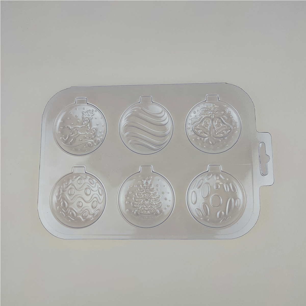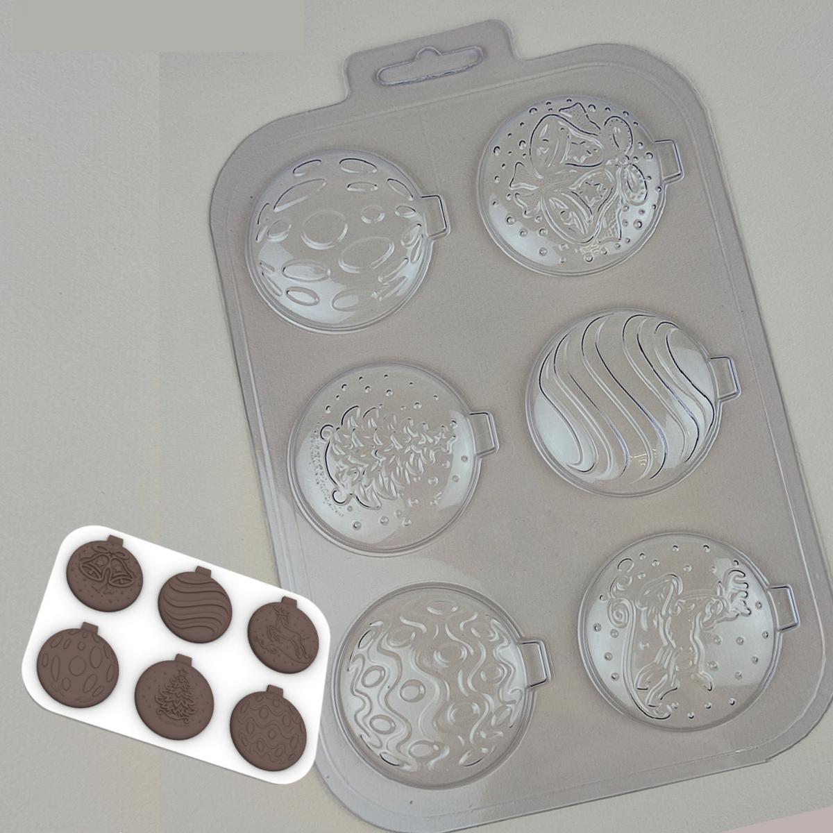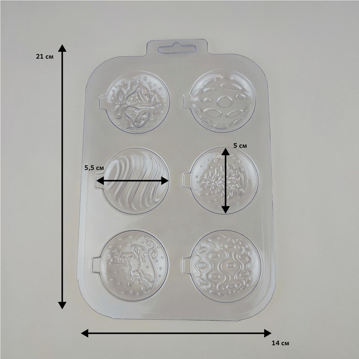 Форма для шоколада “Новогодние игрушки” — предназначена для создания красивых праздничных шоколадных фигурок. Благодаря чёткой детализации каждая фигурка получается аккуратной и рельефной. Отлично подходит для украшения десертов, подарочных наборов или самостоятельных сладких сувениров.Она содержит 6 ячеек в форме елочных шаров с разными новогодними сюжетами, что позволяет за один раз приготовить несколько разнообразных изделий.