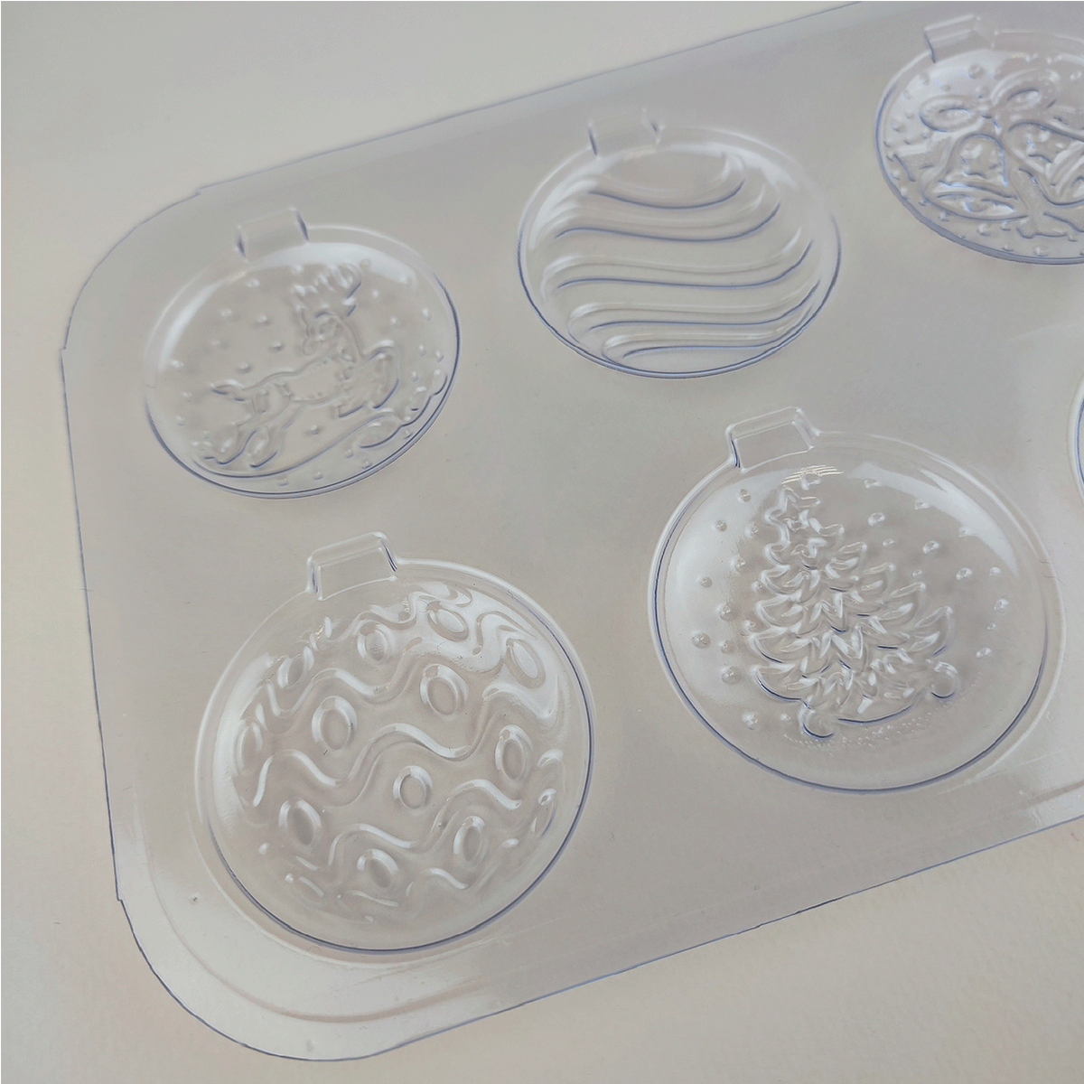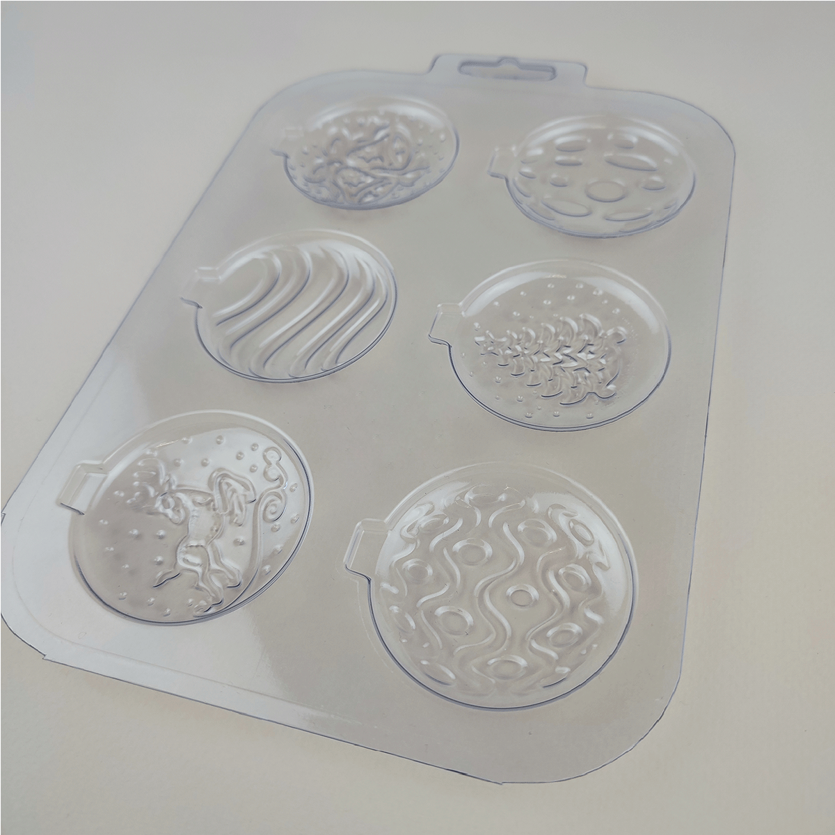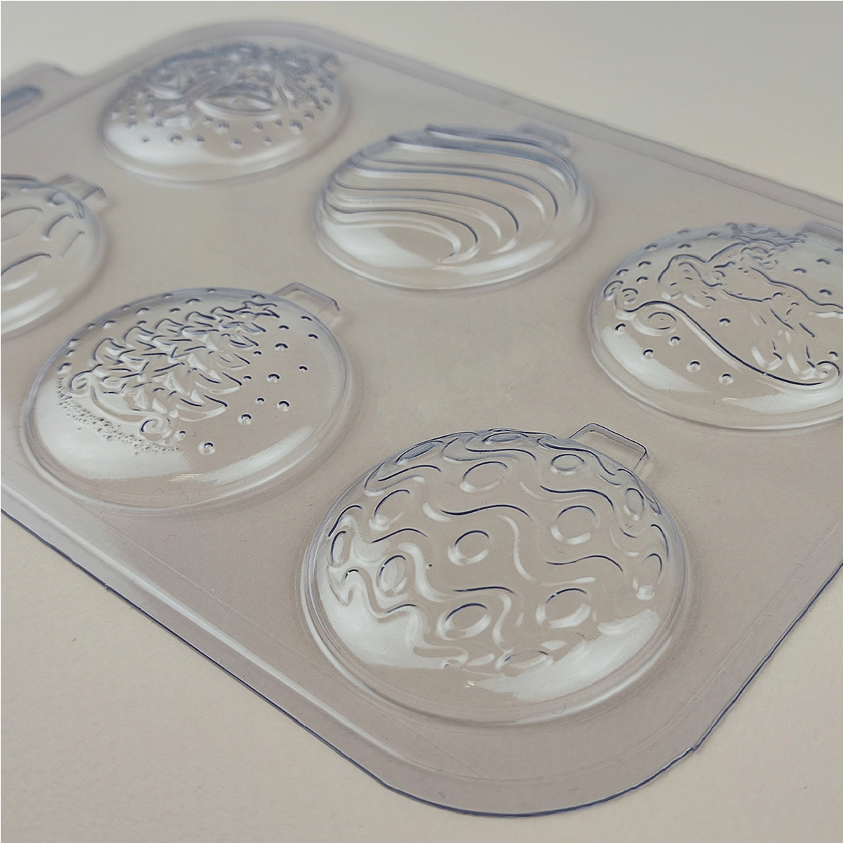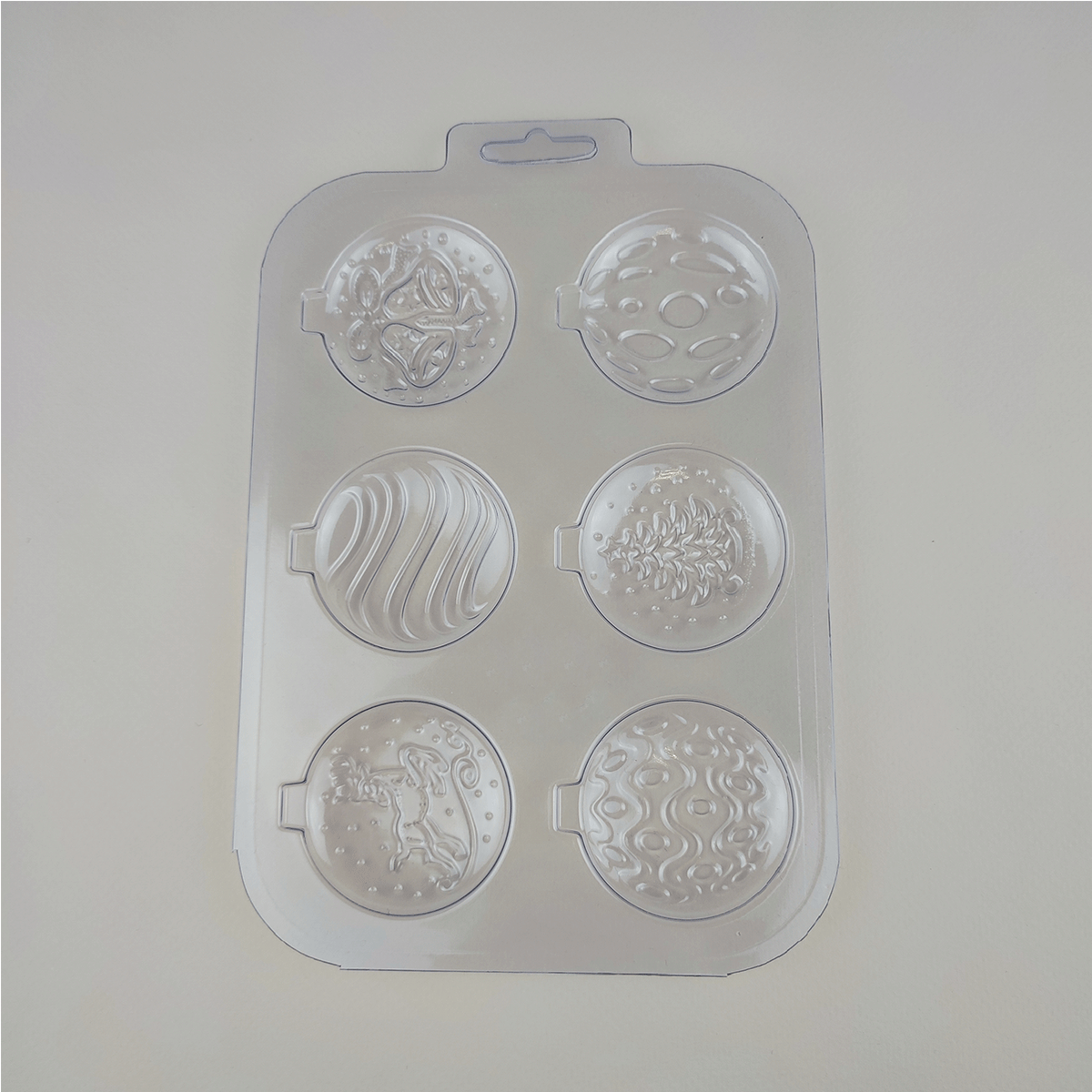 Форма для шоколада “Новогодние игрушки” — предназначена для создания красивых праздничных шоколадных фигурок. Благодаря чёткой детализации каждая фигурка получается аккуратной и рельефной. Отлично подходит для украшения десертов, подарочных наборов или самостоятельных сладких сувениров.Она содержит 6 ячеек в форме елочных шаров с разными новогодними сюжетами, что позволяет за один раз приготовить несколько разнообразных изделий.