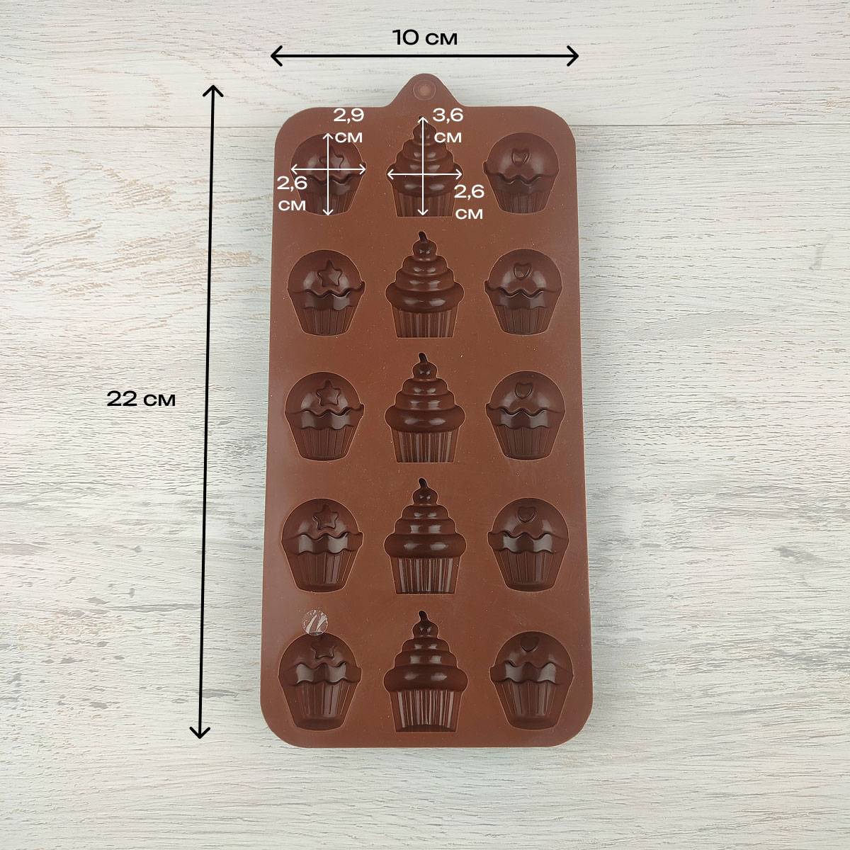 Форма силиконовая для шоколада и льда Капкейки 15 ячеек
