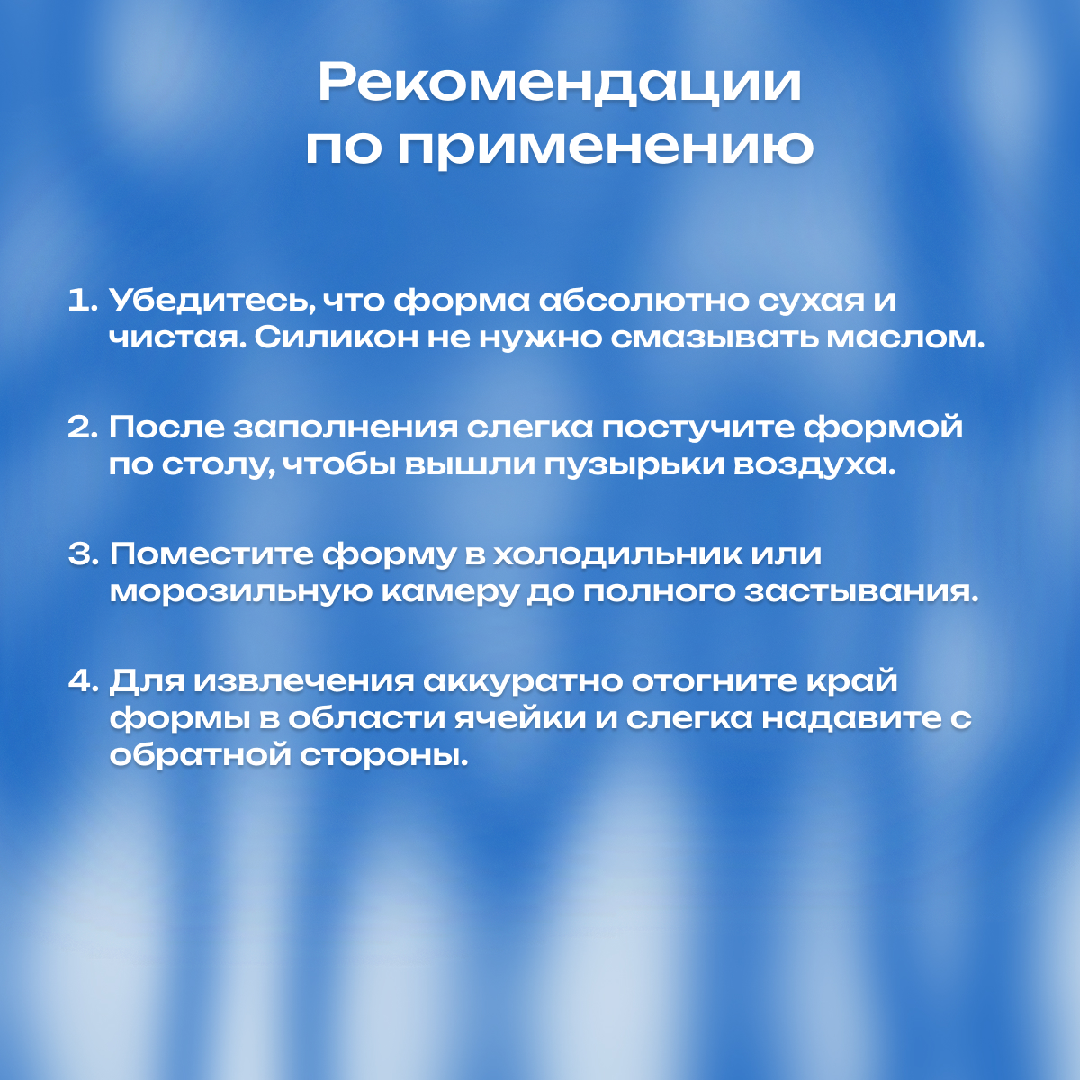 - Легкое извлечение: Гибкий силикон обеспечивает идеальную форму готовых изделий.