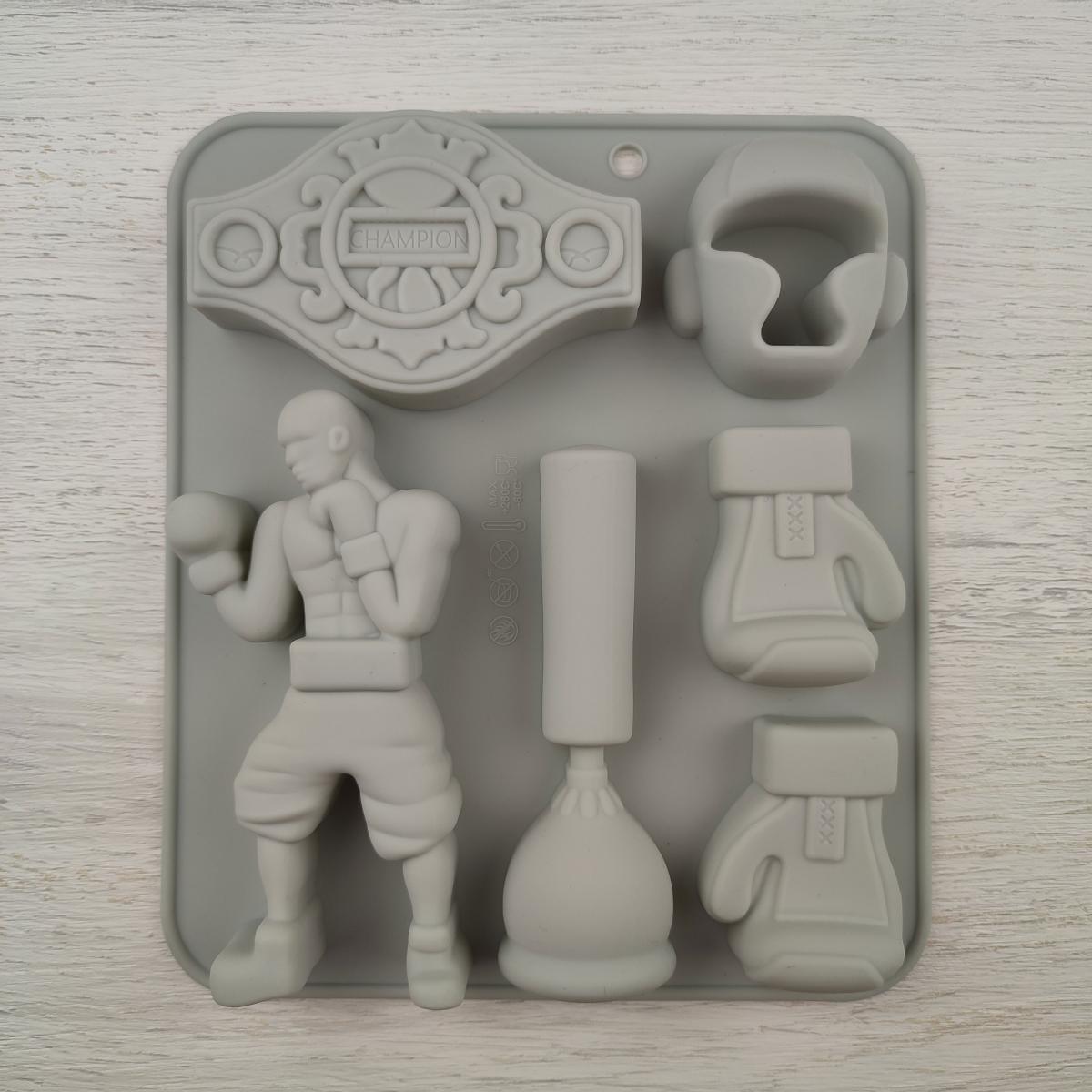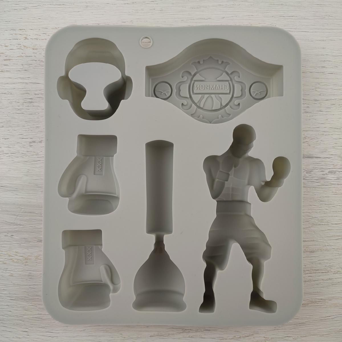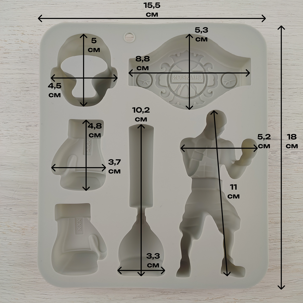 С этой формой вы легко создадите целую коллекцию аппетитных мини-десертов или шоколадных фигурок в боксёрской тематике. Представьте: чемпионский пояс, боксёрские перчатки, шлем, груша для ударов и даже фигурка боксёра — каждое изделие будет выглядеть как настоящий спортивный трофей!