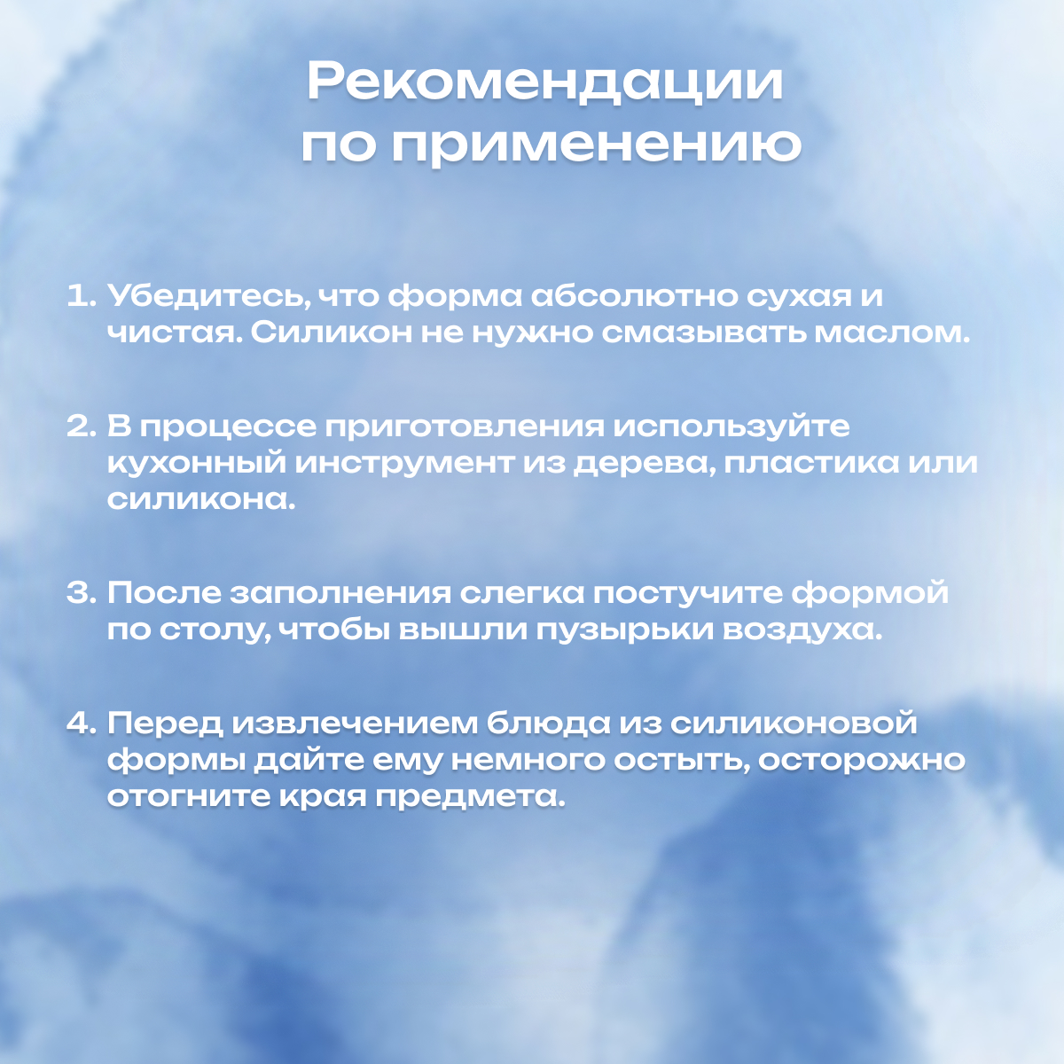 - Безопасность: Изготовлена из пищевого силикона, подходит для морозилки, духовки и микроволновки