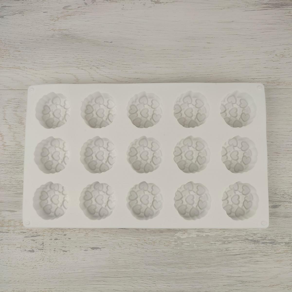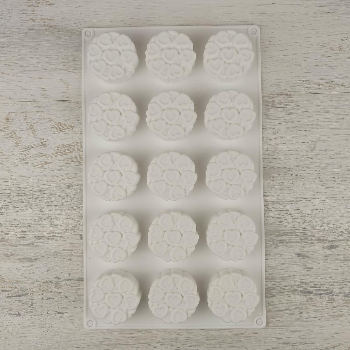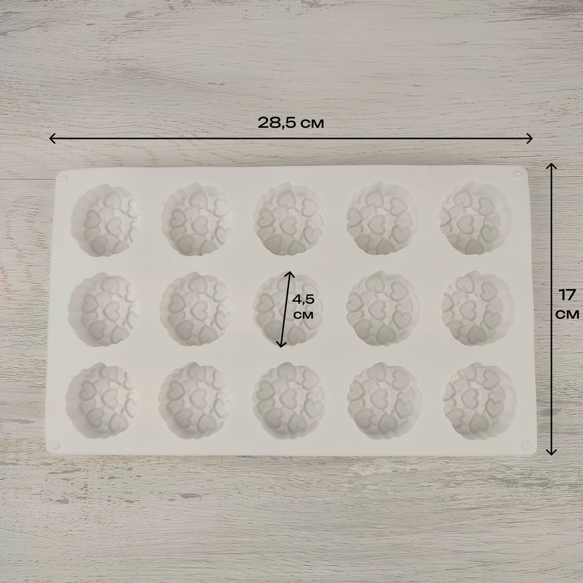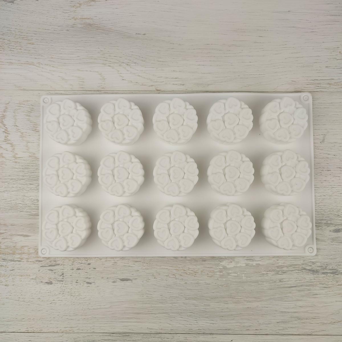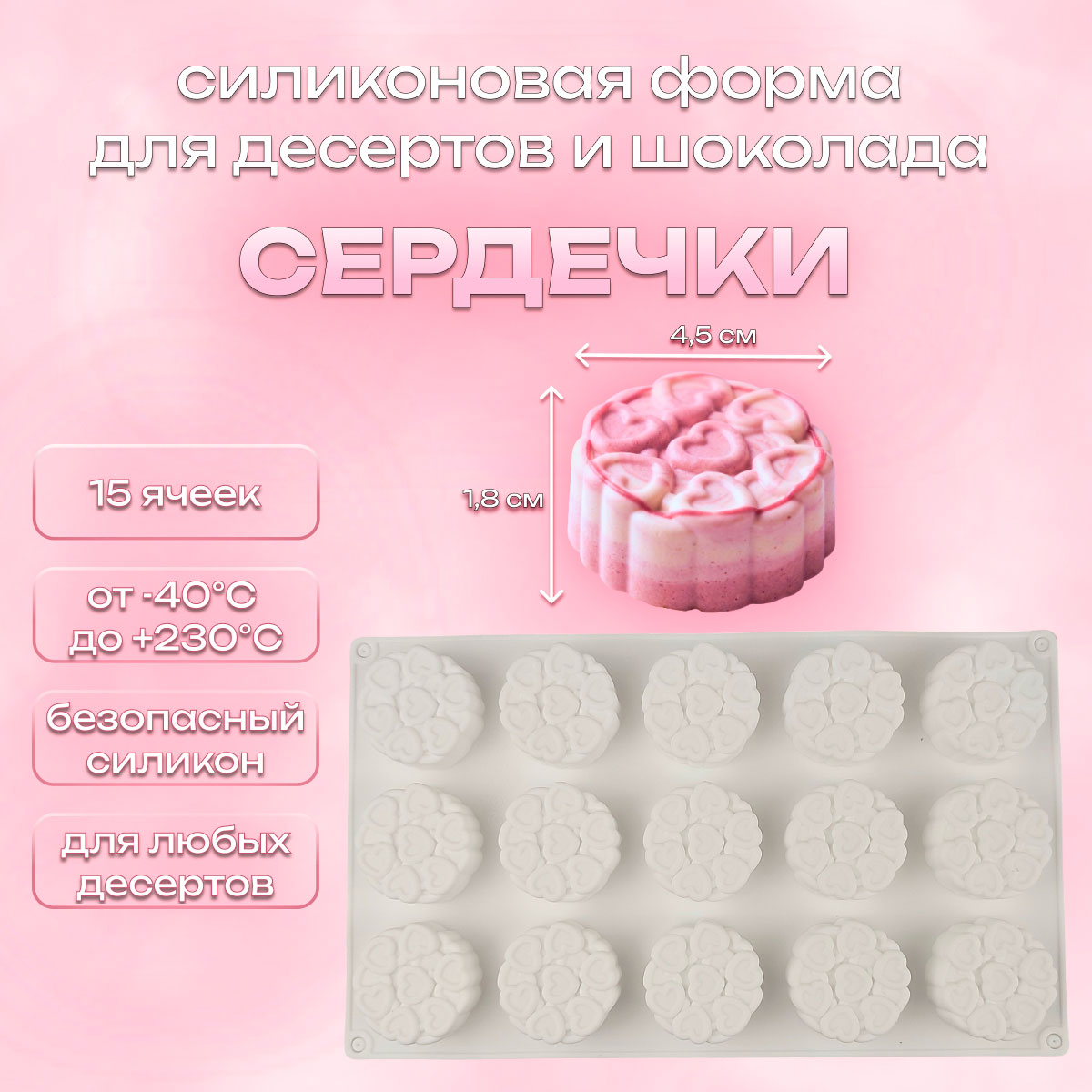 Силиконовая форма для десертов и шоколада Сердечки 15 ячеек