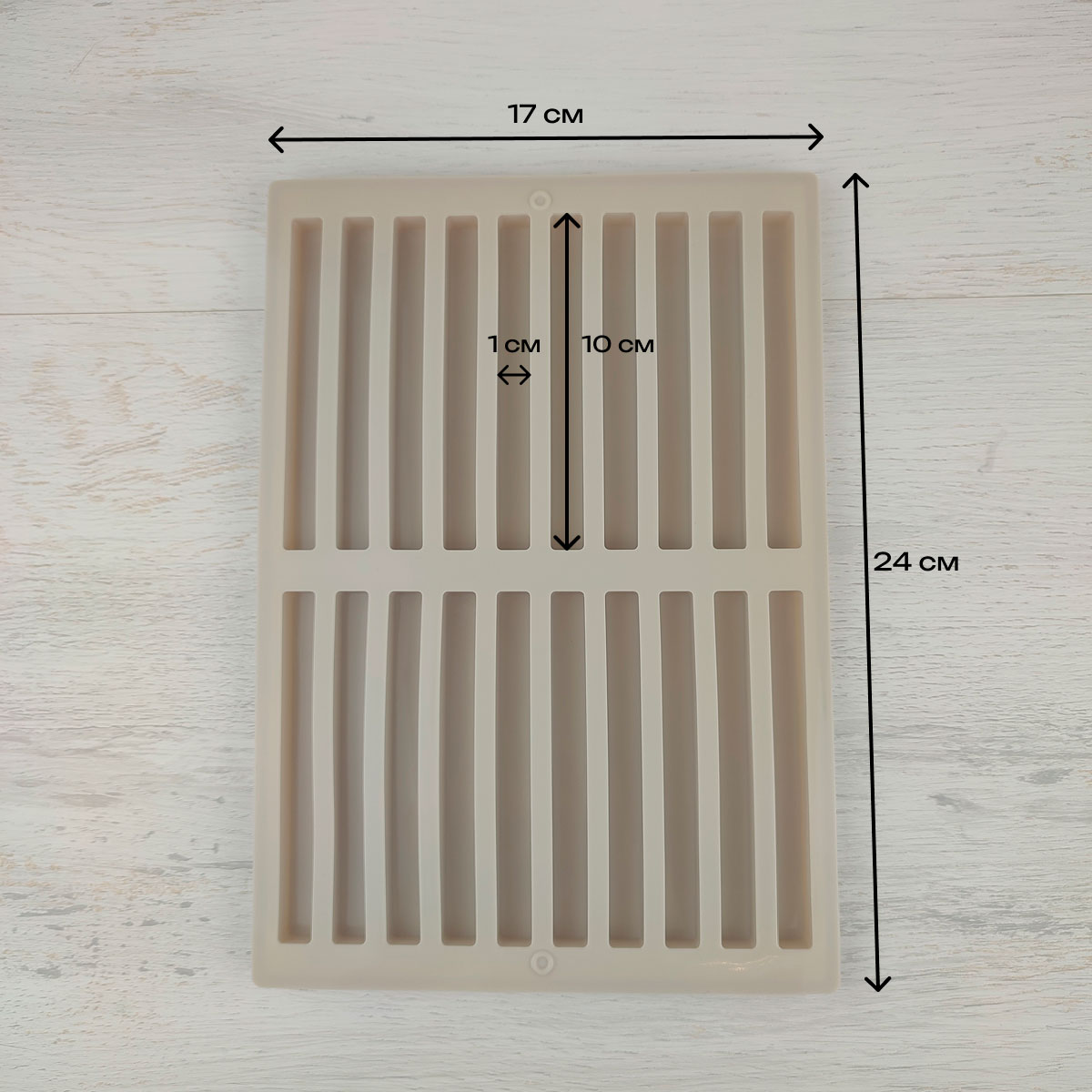 Силиконовая форма «Мармеладные палочки» — практичный инструмент для создания аппетитных сладостей в домашних условиях. С её помощью легко приготовить партию мармеладных палочек, мини-шоколадных батончиков, фруктовых желе-батончиков или карамельных палочек для семейного чаепития, детского праздника или в качестве оригинального подарка. Форма выполнена из гибкого, термостойкого силикона, который не вступает в реакцию с продуктами и безопасен для контакта с пищей — можно без опасений заливать в ячейки горячий шоколад, желе или мармеладную массу. Благодаря эластичности материала готовые изделия легко извлекаются, сохраняя идеальную форму палочек, а сама форма не впитывает запахи, быстро сохнет и подходит для мытья в посудомоечной машине. Компактный размер и лаконичный дизайн делают эту форму незаменимой на кухне — экономьте время, экспериментируйте с разными вкусами и создавайте вкусные и красивые сладости с минимальными усилиями!