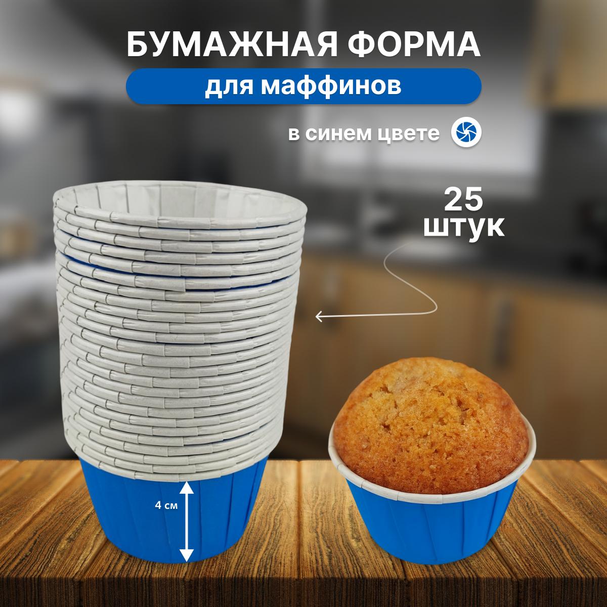 Бумажная форма для маффинов стандарт 25 шт Синяя