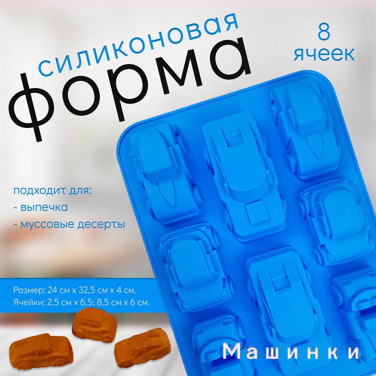 Размер: 24 см х 32,5 см х 4 см. Размер фигурки по длине от 8,5 см до 12,5 см. Ширина от 6 до 6,5 см. Форма содержит 8 ячеек.