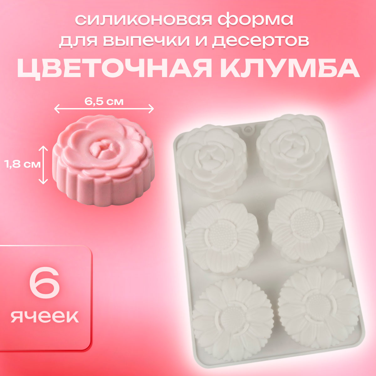 Силиконовая форма для выпечки и десертов Цветочная клумба 6 ячеек