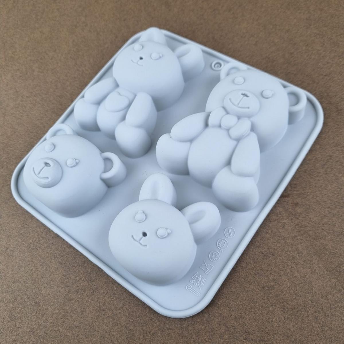 Силиконовая форма для выпечки и десертов Заяц и медведь 4 ячейки