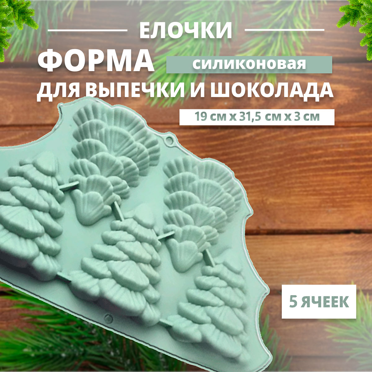 Форма силиконовая для выпечки и шоколада Елочки 5 ячеек