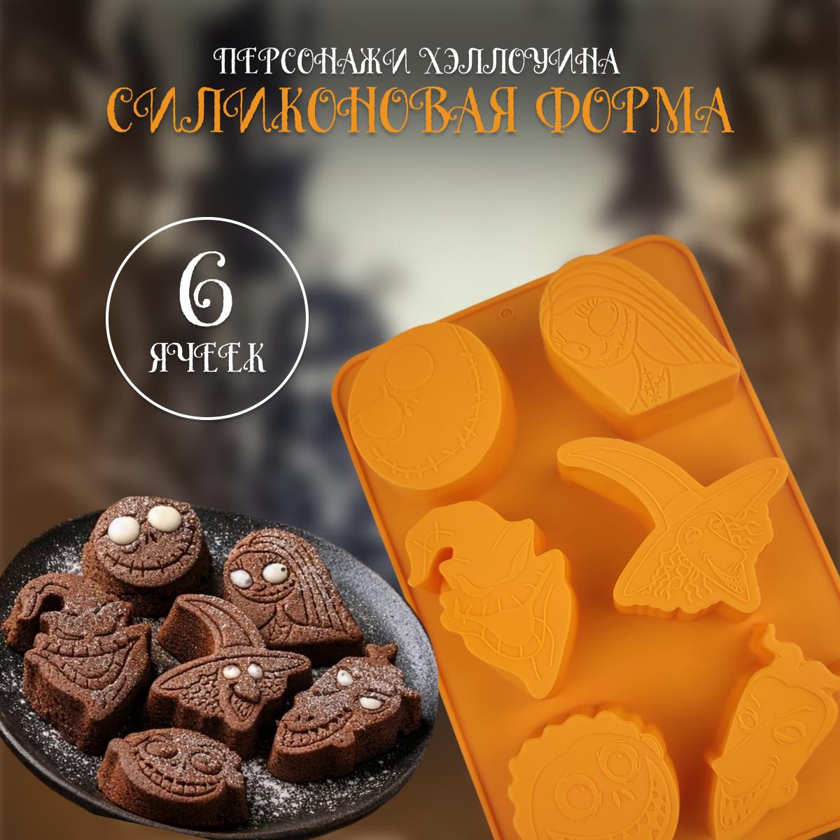 Силиконовая форма для выпечки 6 ячеек персонажи Хэллоуина