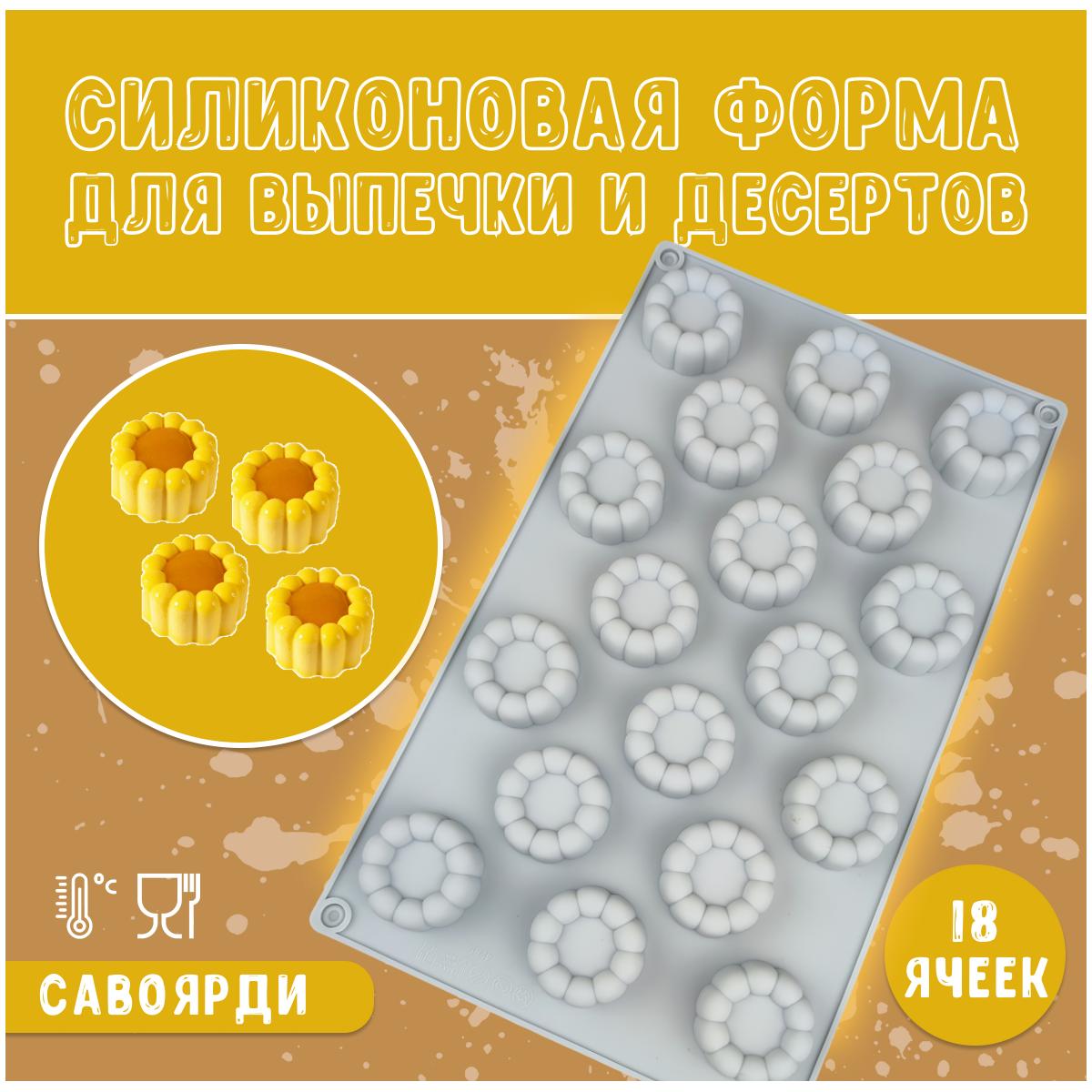 Силиконовая форма для десертов «мини кексы Савоярди» с 18 ячейками. Эта форма идеально подходит как для домашнего использования, так и для профессиональных кондитеров, позволяя быстро и удобно подготовить сразу несколько мини-кексов. Изготовленная из высококачественного пищевого силикона, данная форма отличается превосходной гибкостью, прочностью и долговечностью.