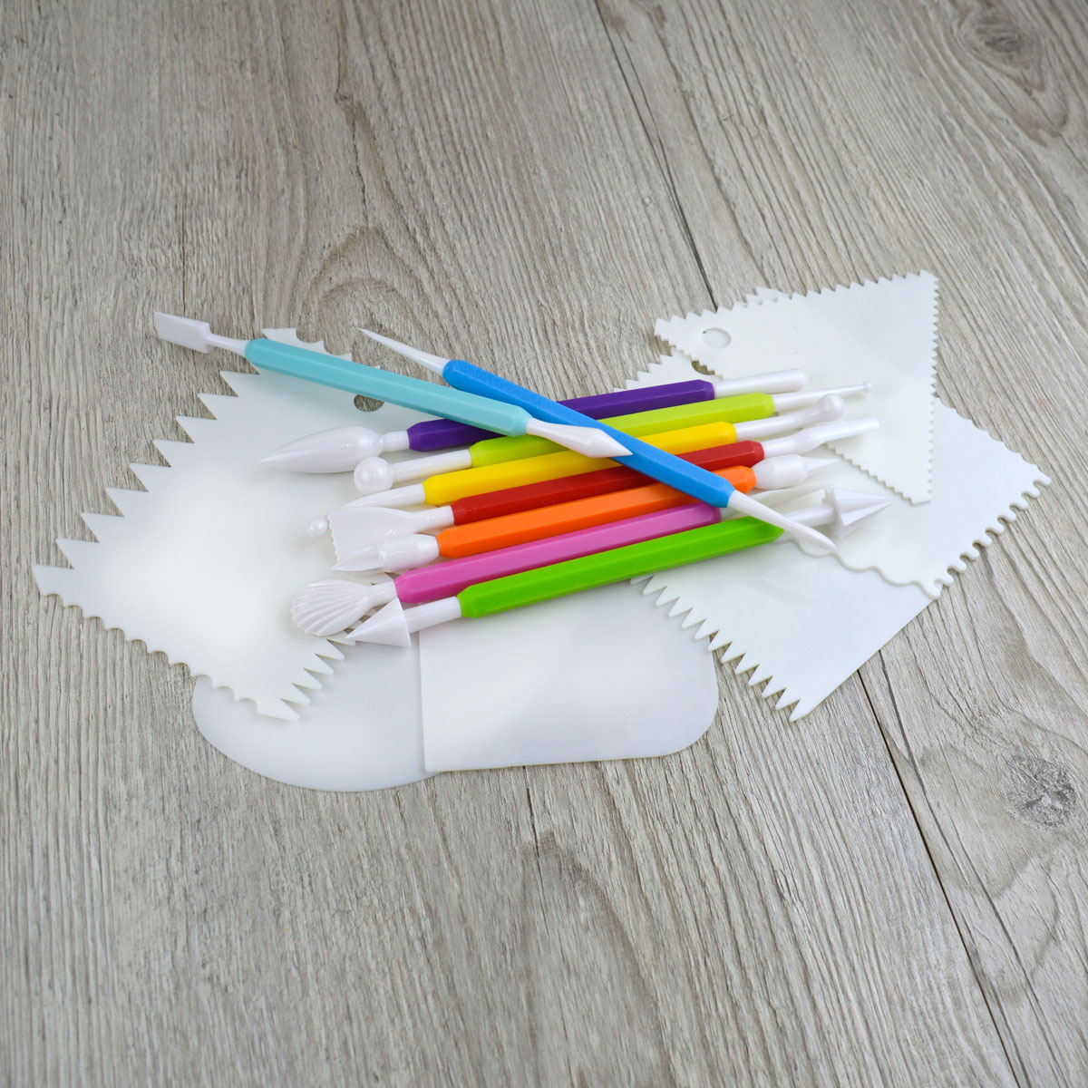 Набор кондитерских, пластиковых, кулинарных принадлежностей инструментов лопаток для кондитера предназначен для декора десертов, украшений. Подходит для работы с мастикой, марципаном, помадкой, пластилином. У посуды инвентаря каждый шпатель оснащен двусторонними наконечниками. Ножи применяются для надрезов, подрезки мастики, вырубки отверстий, выдавливания необходимой текстуры и объёма на мастике, создания рюш и оборок, тиснения и множества других необходимых операций.