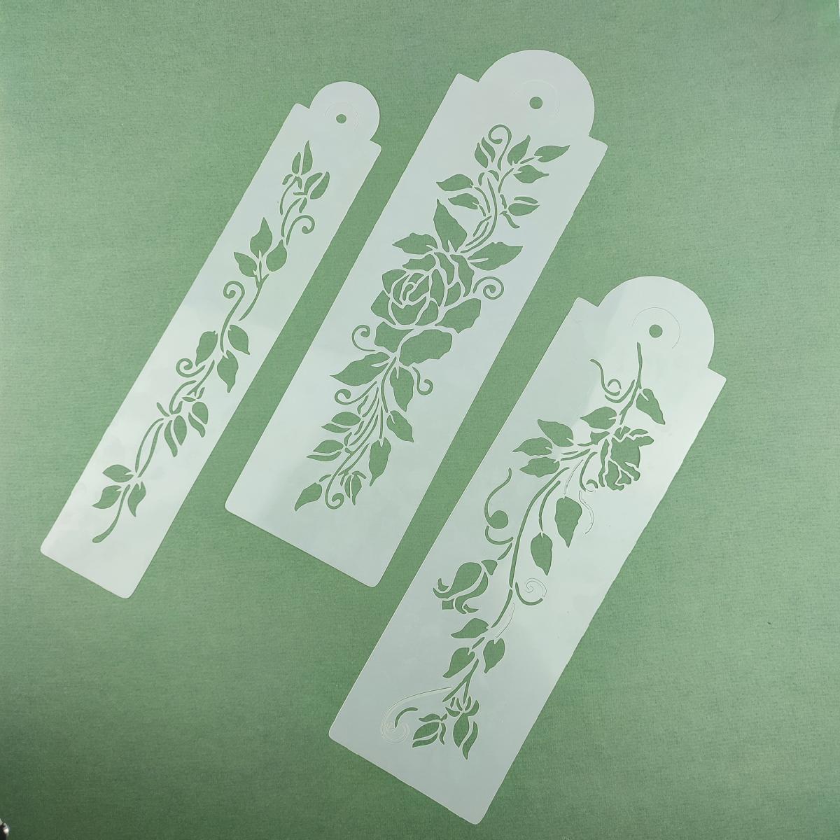 Этот набор из трех уникальных трафаретов создан для того, чтобы добавить изысканности и нежности вашим десертам. Идеально подходит для украшения тортов с помощью айсинга, сахарной пудры, какао или даже пищевых красок. Каждый трафарет предлагает свой уникальный узор, вдохновленный красотой природы.