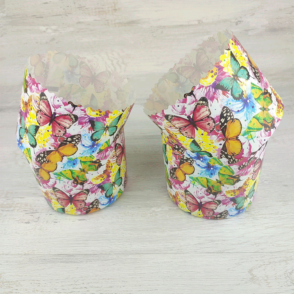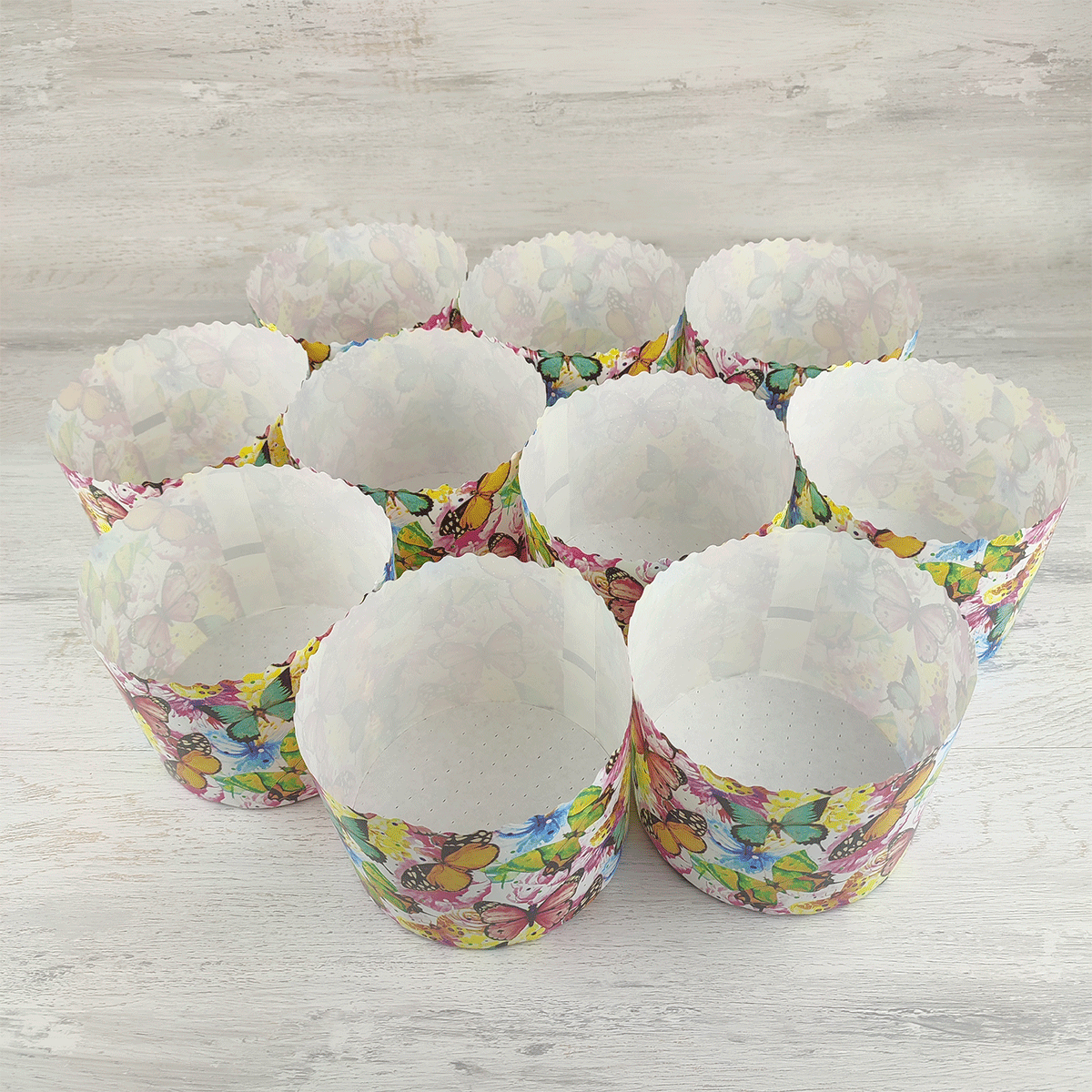 Бумажная форма для кулича 10 шт Бабочки цветные Д-134 Н-100