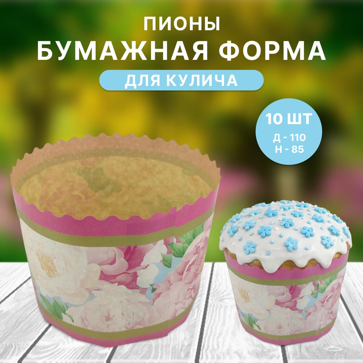 Бумажная форма для кулича 10 шт Пионы Д-110 Н-85