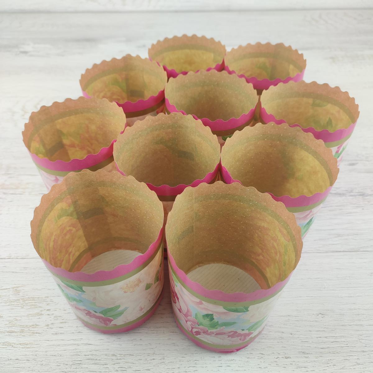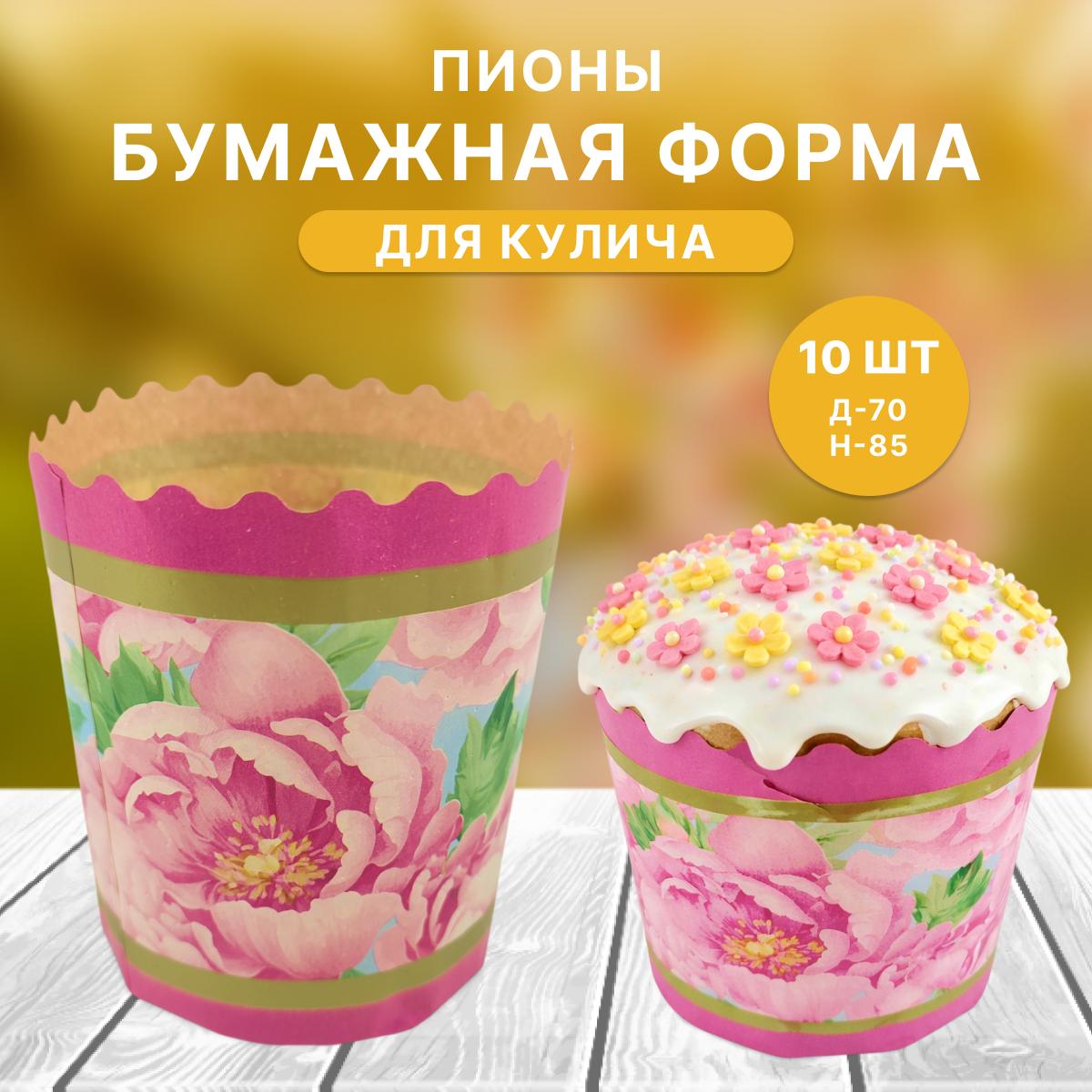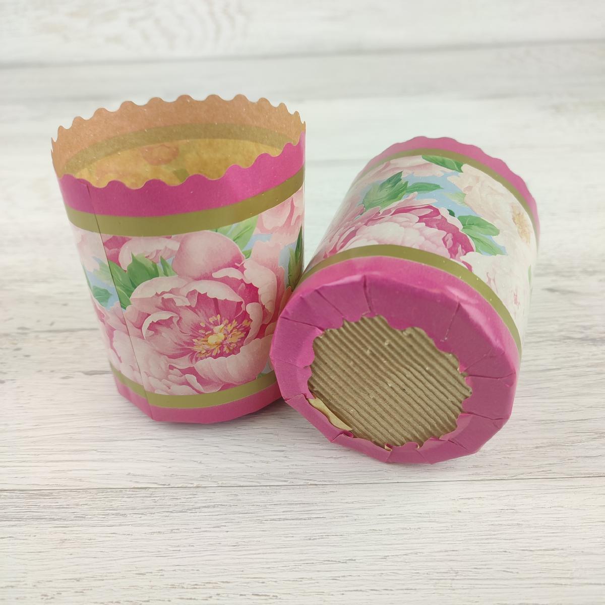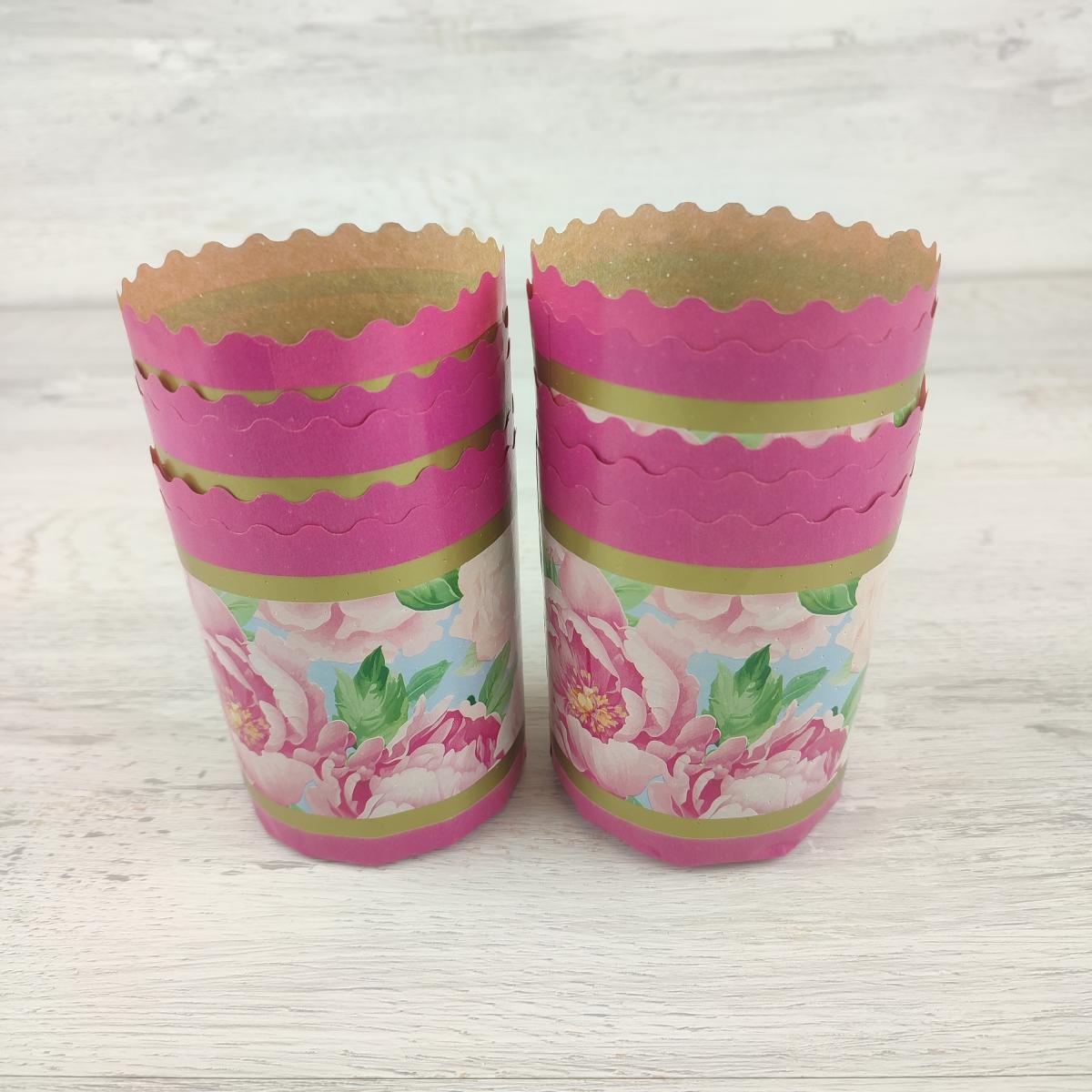 Бумажная форма для кулича 10 шт Пионы Д-70 Н-85
