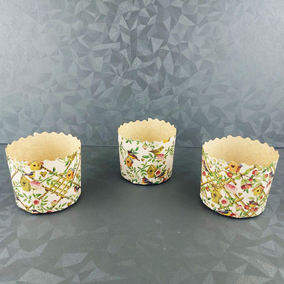 Бумажная форма для кулича Птички в саду 10 шт Д-70