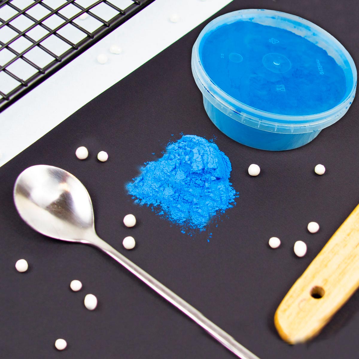 Сухой пищевой краситель подходит для придания сочного голубого цвета кондитерским изделиям.