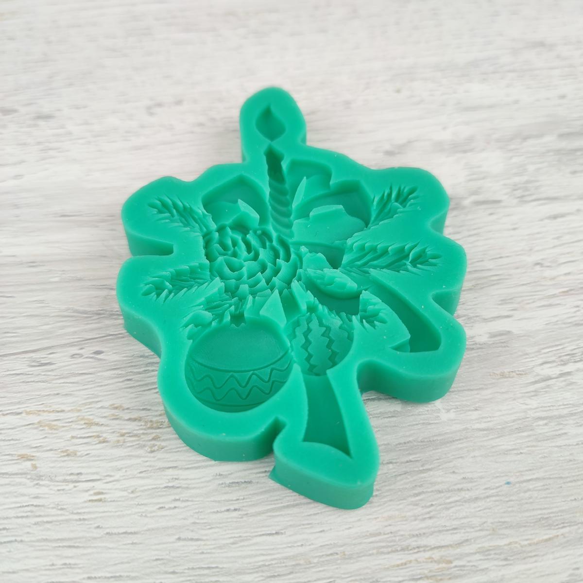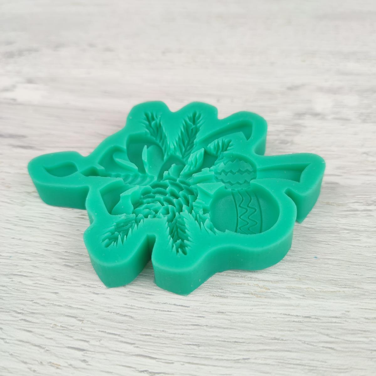 Создавайте изысканную новогоднюю композицию с помощью силиконового молда «Новогодний букет». Гибкая форма передаёт мельчайшие детали элементов: банта, еловой ветки, свечи, новогоднего шарика и шишки, а отполированная внутренняя поверхность обеспечивает идеальное снятие готового изделия.