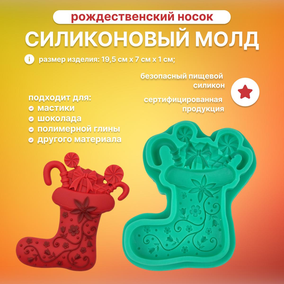 Силиконовый молд «Рождественский носок» поможет легко создать праздничный декор с чётким рельефом и аккуратными деталями. Форма выполнена из качественного, эластичного и долговечного силикона, который выдерживает широкий диапазон температур и подходит для многократного использования. Благодаря гибкости материала изделие легко вынимается, не теряет формы и сохраняет чёткие контуры.