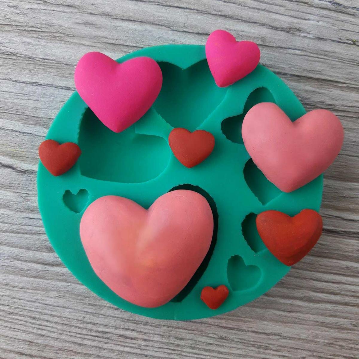Силиконовый молд 2D Сердца ассорти