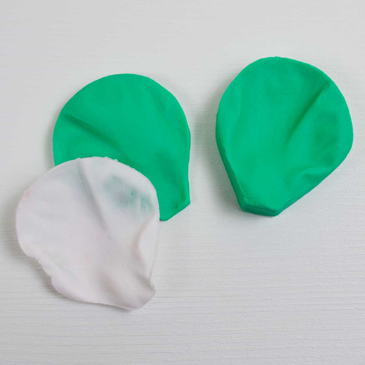 - Кладем мастику в одну половинку вайнера, придавливаем плавными движениями – украшение сразу принимает нужную форму.