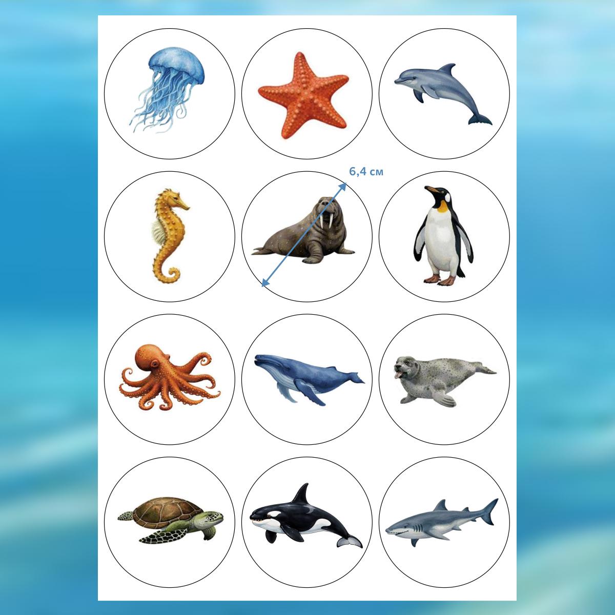 Набор съедобных картинок Морские животные 12 шт