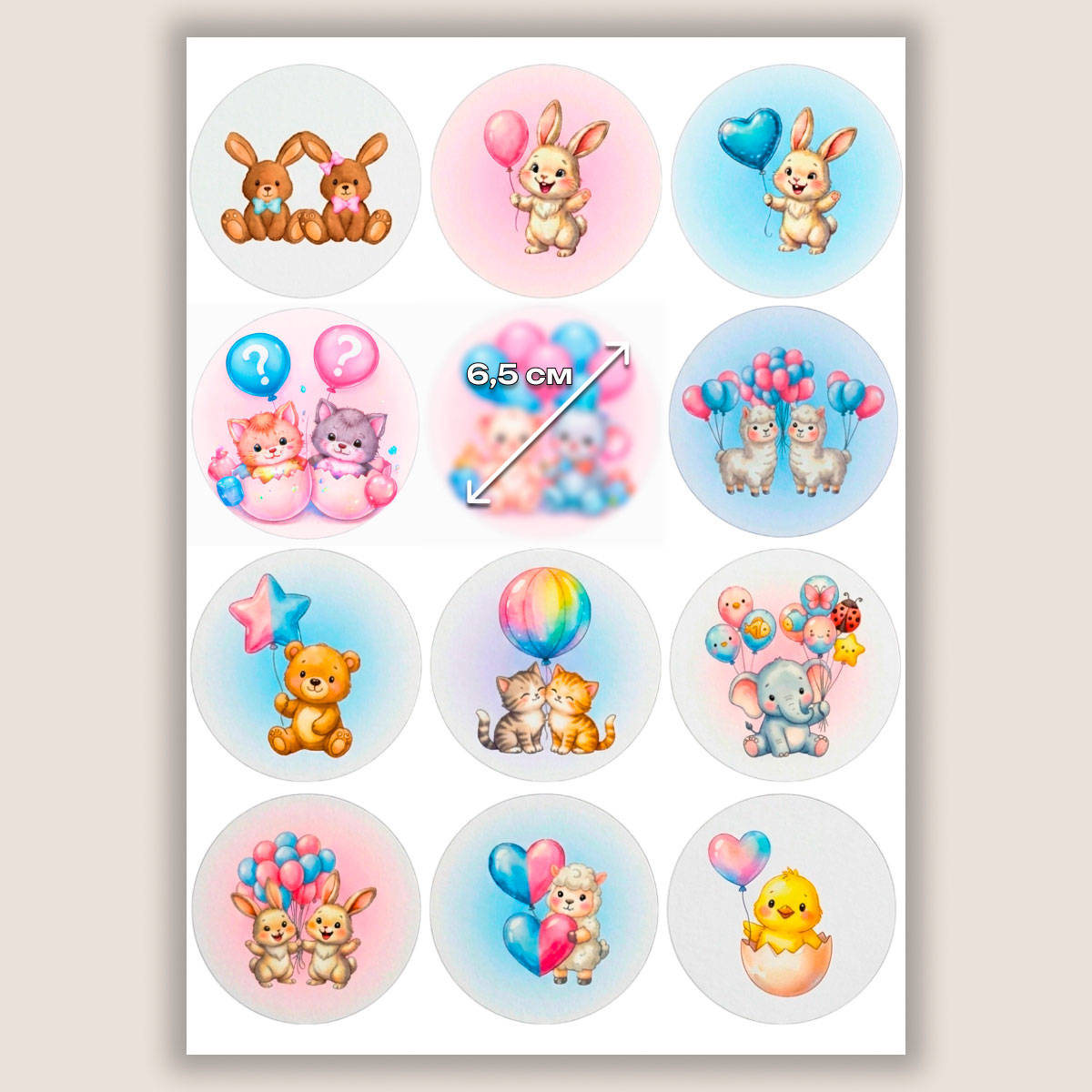 Набор съедобных картинок на торт 12 шт Гендер-пати 2