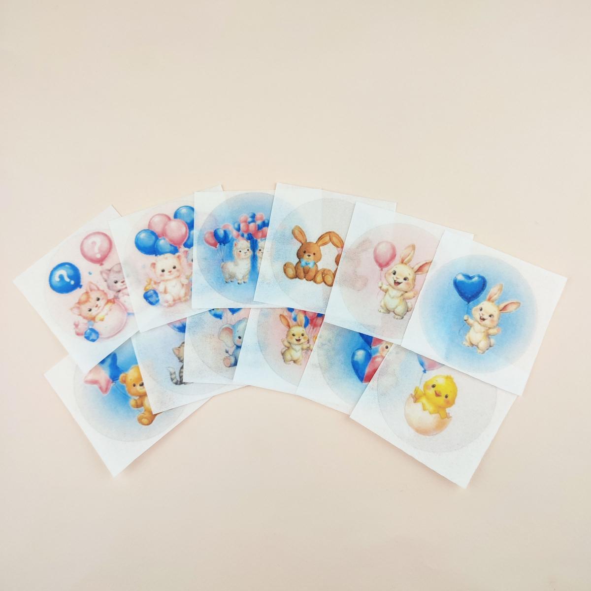 Превратите торт или капкейки в нежный и трогательный центр вашего гендер-пати с этим набором съедобных вафельных картинок.