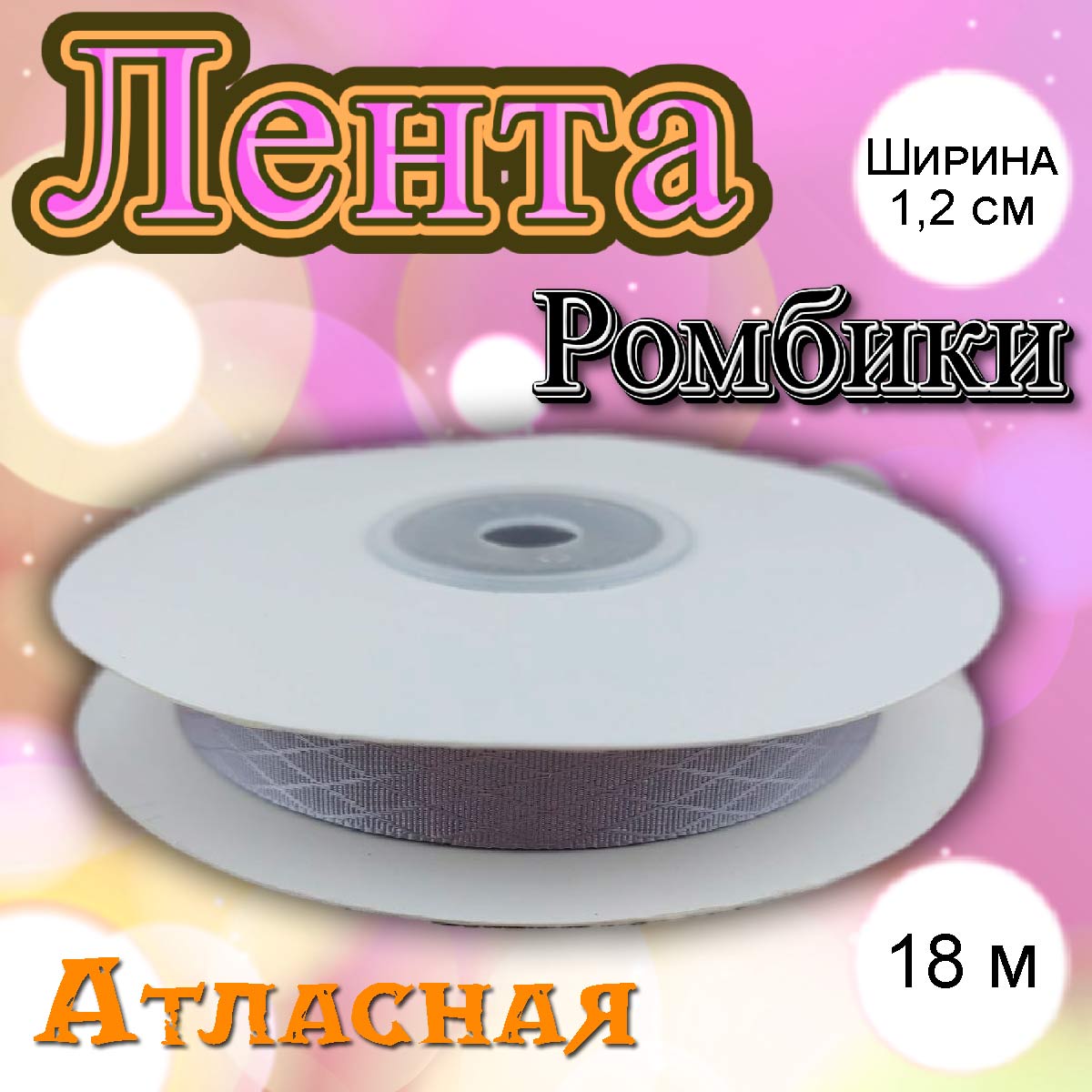 Лента атласная Ромбики серая 1,2 см